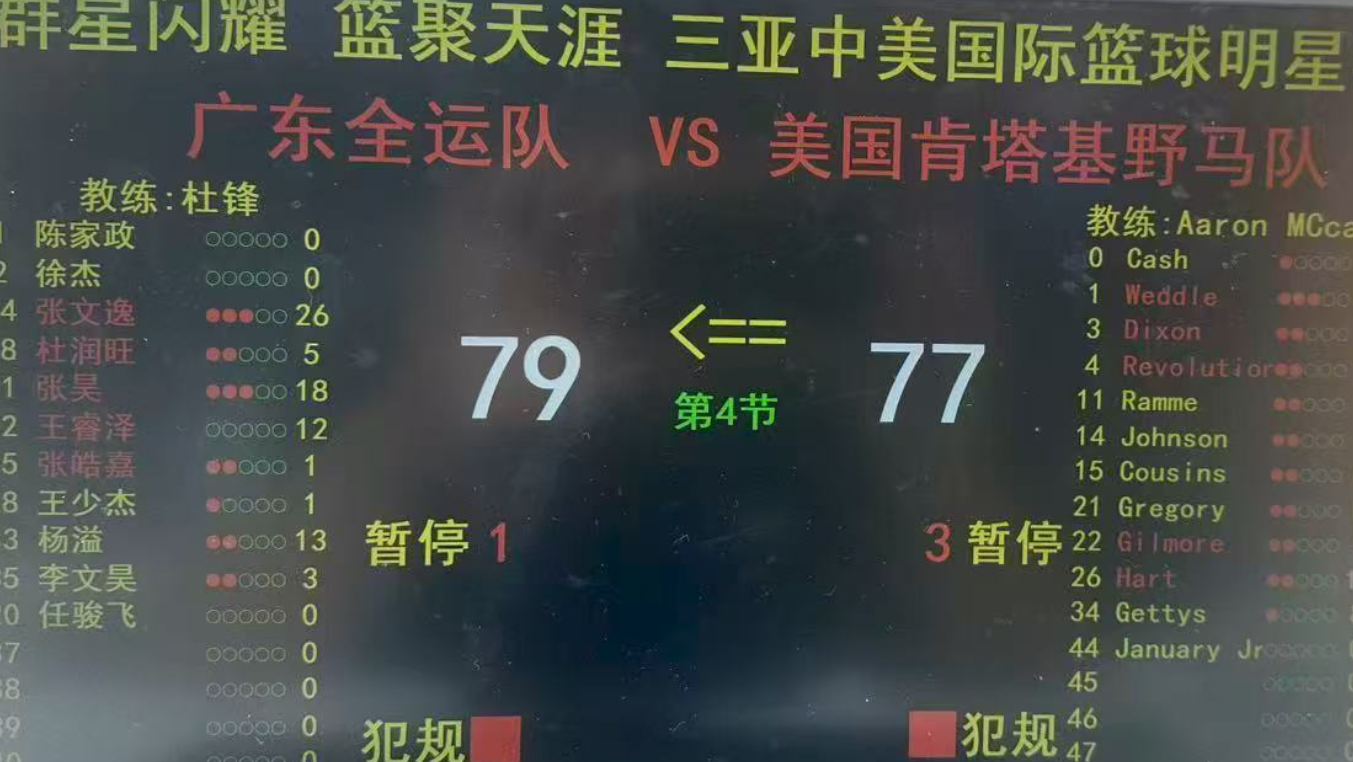 广东热身赛79-77险胜美国肯塔基队。这场比赛广东打得还是非常惊险,因为最后时刻险些被对手拖入加时赛,幸好还是可以顶住。